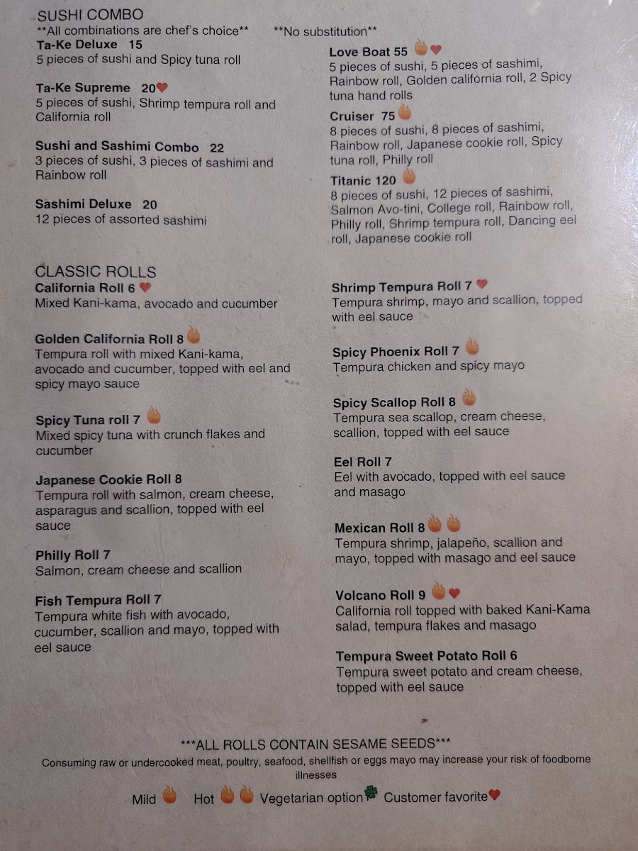 With reviews praising the freshness and unique flavor combinations, Ta-Ke Sushi and Grill promises not just a meal, but an unforgettable dining experience.